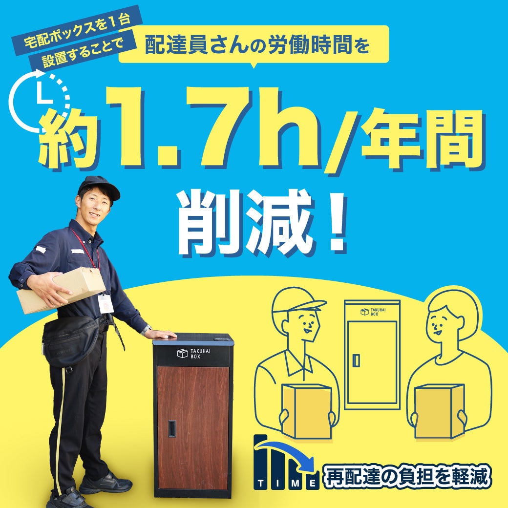 配達員さんを応援しよう – 宅配ボックス1台あたり1.7時間労働時間を削減。宅配ボックスで、配達員の労働時間削減と、再配達の削減を目指します。