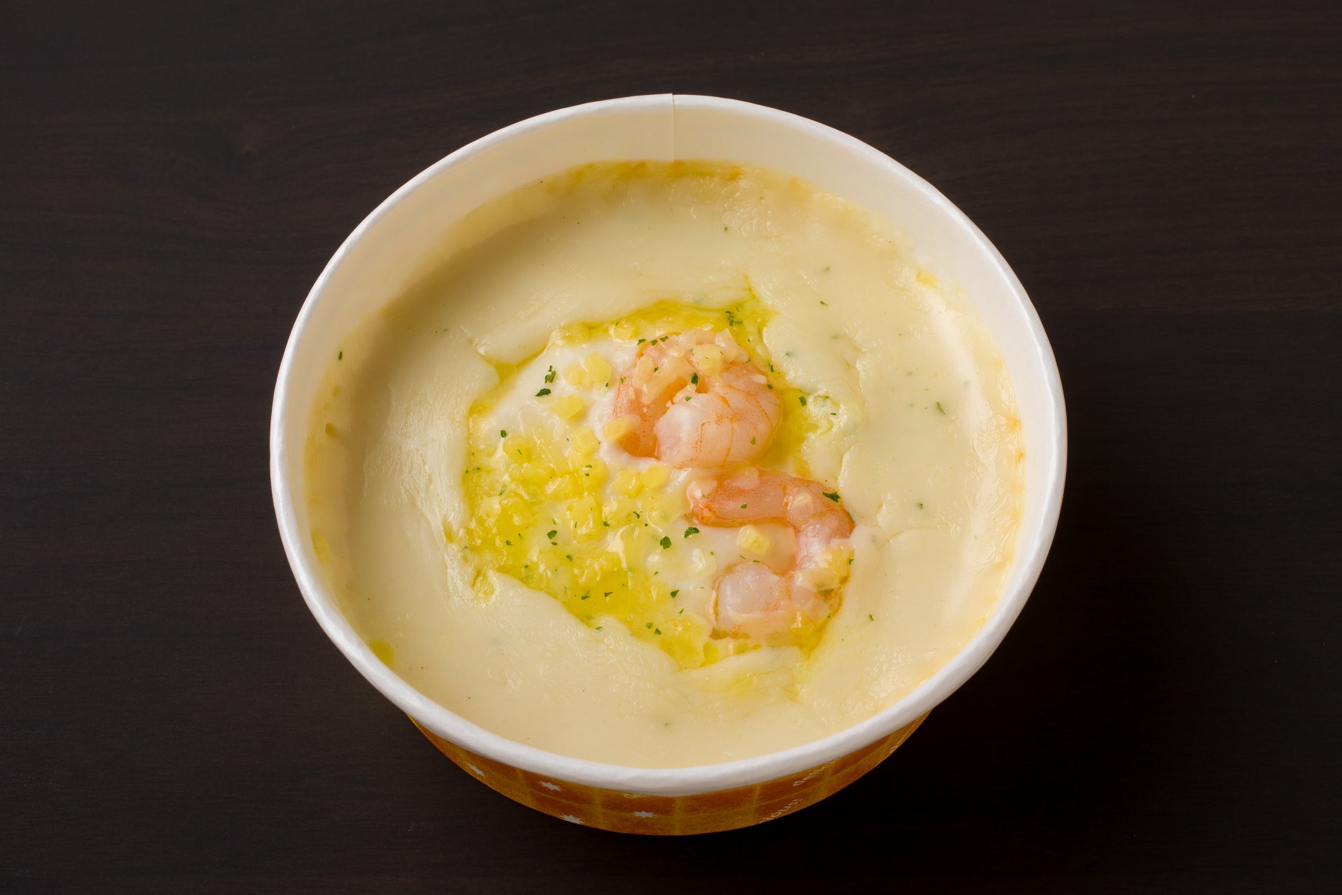 ぷりっとした食感と旨みのある海老に3種類のチーズをトッピングしたマカロニグラタンです。