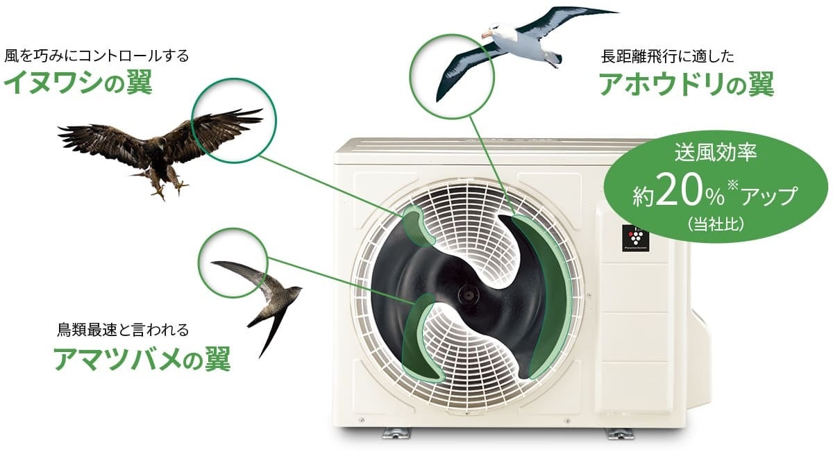地球環境問題が深刻化するなか、生きものから学ぶ技術「バイオミミクリー」は、ときに、エネルギーや資源の無駄を解決する糸口となることがあります。今回展示する商品の中にも、鳥の翼の形を参考にすることでエネルギー効率が上がり、省エネルギー化を実現できたエアコンのファンや、ホタテの形状を参考にすることで周囲の環境との親和性を高めたテトラポッドなどがあります。