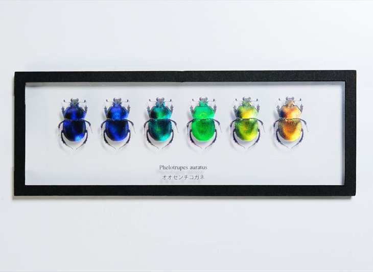 本企画展では、バイオミミクリーによる商品や技術開発に携わった14の企業・団体の協力のもと、商品とモデルになった生きものの性質について展示紹介いたします。なかでも、本企画展の看板は色素を使わずに微細構造由来の光の反射で色を見せる「構造色」の印刷技術を用いて制作される予定です。