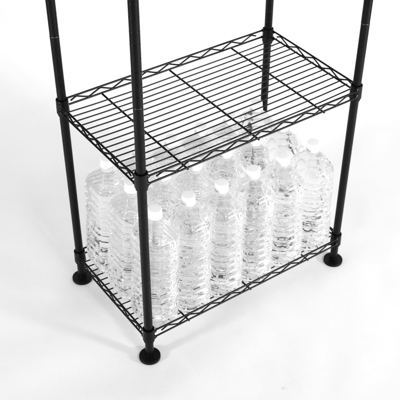 ダーツ用品だけでなく、日用品の保管スペースとしても便利な大容量ラック一体型。置き場に困りがちな2Lペットボトルのストックも、一段あたり最大12本まで収納可能です。