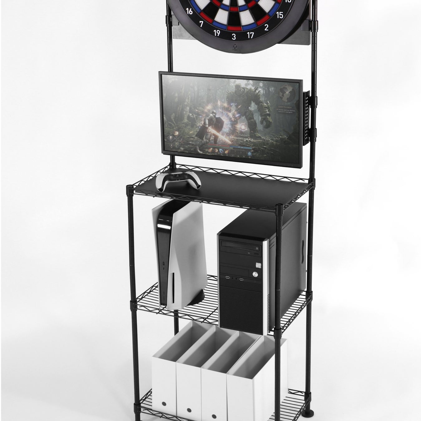 ●配線やモニターをスッキリ集約して、理想のダーツ環境を構築:ごちゃつくコードを目隠ししながら配線整理&タブレット類が設置できるパンチングボードを搭載。電子ダーツでのオンライン対戦も、自宅でスマートに楽しめます。