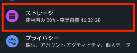 Step1:「設定」から「ストレージ」を選択します。