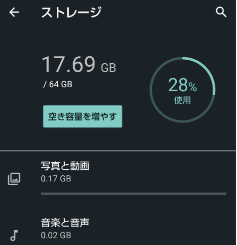 Step2:ストレージの使用状況が表示されます。ストレージを圧迫しているファイルを確認して削除します。
