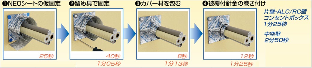 空調用途においてもこれまでの電気用途と同様に、「フィブロックNEO」の特長である「パテ埋め不要な簡単施工」により、人手不足やパテ脱落といった技術問題、検査の不安等の現場課題を解決します。また空調・電気用途共通での認定番号を取得するため、現場での管理も容易です。