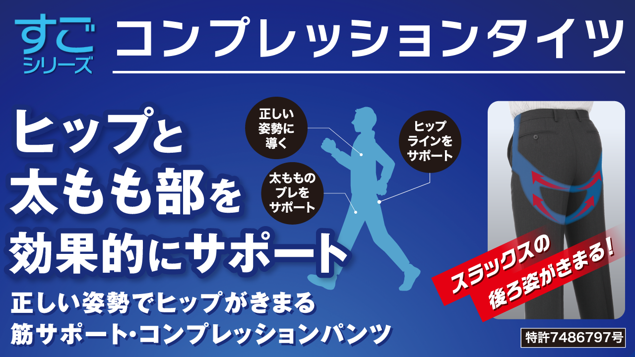 青山商事株式会社(本社:広島県福山市/代表取締役社長:青山理(おさむ))は、就職活動の面接や新しい職場などで第一印象を高めるアイテムとして、スーツ姿を美しく見せる「スーツ専用コンプレッションタイツ」を全国の洋服の青山および、公式オンラインストアで発売しています。