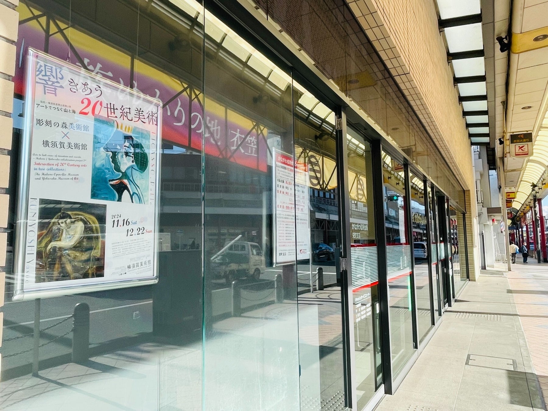 パネル展示実施店舗内に設置の、かながわ信用金庫×横須賀美術館コラボチラシを、美術館受付にてご提示いただいた方には観覧料を2割引いたします。