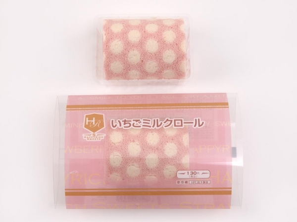 可愛らしい水玉模様のスポンジで、ほんのりいちご感の味わえるいちごミルククリームを巻き込んだロールケーキです。