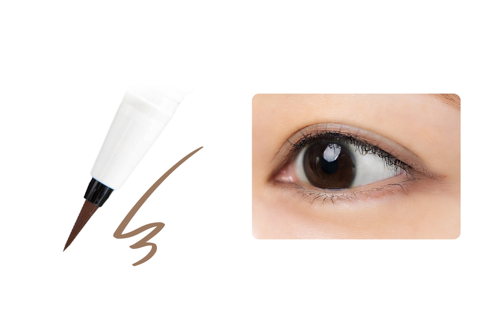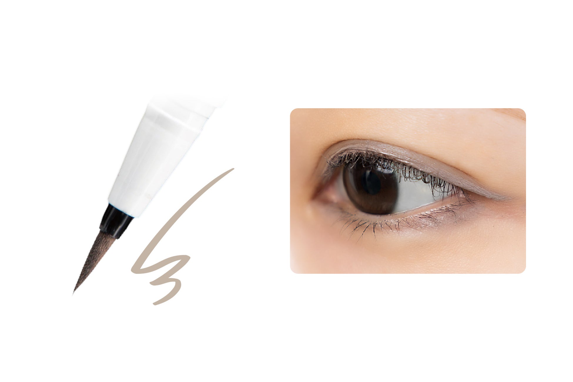 目頭から目尻まで美しいラインを心地よく描ける「トメ」「ハネ」「ハライ」に最適な穂先として、ブラック・ダークブラウン・プルシアンブルー・ローシェンナには繊細なラインが自由自在にひけるブラシタイプの極細筆、グレーベージュには最後まで均一なラインが引ける最適なコシのフェルトチップを採用しています。どちらも肌あたりが良くなめらかで、安定した描き心地です。