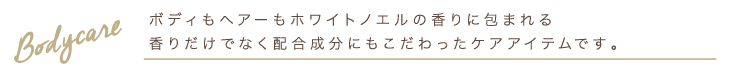 シーンを選ばず使いやすく、ボディもヘアーもホワイトノエルの香りに包まれる。