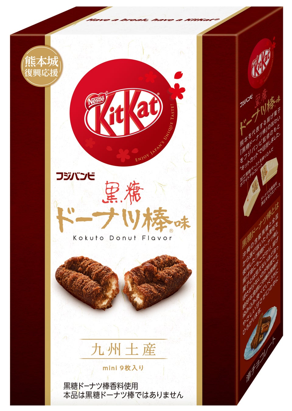 ネスレ日本株式会社(本社:兵庫県神戸市、代表取締役 社長 兼 CEO: 深谷 龍彦、以下「ネスレ」)と株式会社フジバンビ(本社:熊本県熊本市、代表取締役 社長:田中 三正、以下「フジバンビ」)は、ご当地土産として共同開発した「キットカット ミニ 黒糖ドーナツ棒味」を3月1日(火)より九州のお土産ショップで発売します。