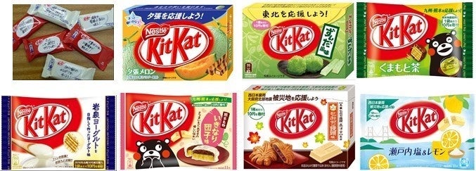 日本各地の名産品や各地域の企業とコラボレーションした「ご当地キットカット」を2021年10月にリニューアルしました。自宅用のお土産ニーズに合わせて、外箱デザインをよりカジュアルな「縦型」仕様に刷新し、より求めやすい価格帯へと変更いたしました。また、1枚当たりが大きくなり、より満足感のある食べ心地を味わえます。
