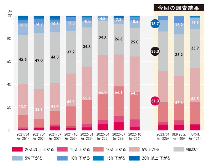 また、現在の価格が買い時と感じている割合も前回調査から1割低下しました。昨年末に報道された日銀の金利幅拡大を受け、住宅ローンの金利上昇が懸念されていることも一因と考えられます。