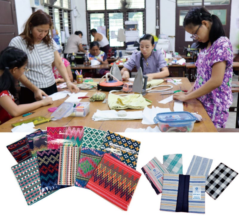 期間中にお申し込みいただいた方に、AARがミャンマーで運営する「障がい者のための職業訓練校」の卒業生が作成した「カード入れ」または「コースター」をプレゼント。ミャンマーの民族衣装に使われる布で作ったオリジナル商品です。