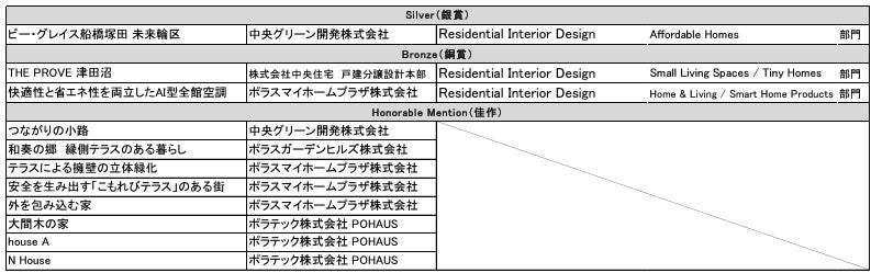 ポラスグループ(本社:埼玉県越谷市、代表:中内 晃次郎)の各社が設計した作品が、国際的なデザインアワード「International Design Awards(IDA)2024」の各賞を受賞しました。銀賞を受賞した中央グリーン開発株式会社(本社:埼玉県越谷市、代表:戒能 隆洋)の「ビー・グレイス船橋塚田 未来輪区」は、都市環境の限られたスペースに、土間、段差、畳等の日本的な建築要素をもとに、日本の美と調和を暮らしに取り入れたことが評価されました。この他、銅賞 2 作品、佳作 8作品で受賞し、合計受賞点数は11作品となりました。