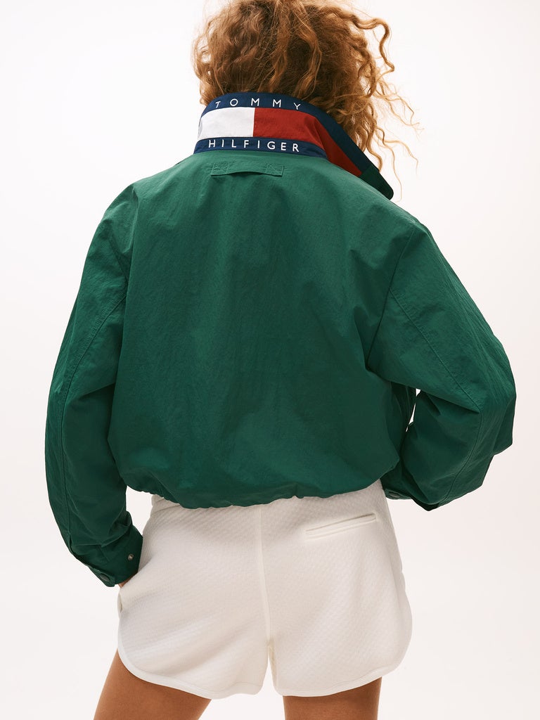 16ピースから成るカプセルは、ハドソン川を航海するエネルギーにインスパイアされ、テクニカルな専門知識と海を旅するエフォートレスなスピリットを融合させています。デザイナーはアーカイブを深く掘り下げて、クラシックなスタイルを再解釈し、ヴィンテージのノスタルジーとモダンなパフォーマンスの架け橋となるようなコレクションを作り上げました。レガッタ・ジャケットはストライプTシャツ等にレイヤードされ、ロープ、プーリー、信号旗といったアイコニックなモチーフがコレクションに織り込まれています。カレッジ・プレップの美学と航海のエッセンスを融合させ、トミー ヒルフィガーの特徴であるスポーツとスタイルの融合をさらに強めています。洗練されたレッドとグリーンのカラーパレットがコンテンポラリーなタッチを加え、海岸にインスパイアされた定番アイテムをフレッシュでエフォートレスなスピリットで、このコレクションを高めています。