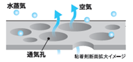 粘着剤は汗や水蒸気を逃がすので(高透湿)ムレにくく、長時間貼っていても快適に使用いただけます。