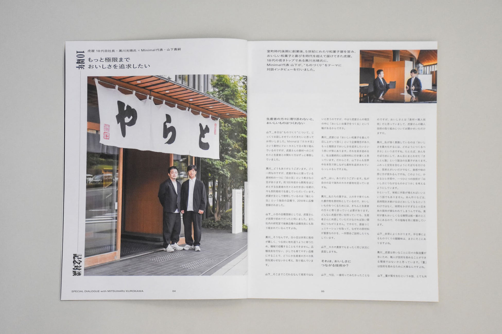 巻頭対談には、Minimalのチョコレートを原材料としてもお使いいただいている、虎屋 18代目社長・黒川光晴氏にご登場いただきました。
