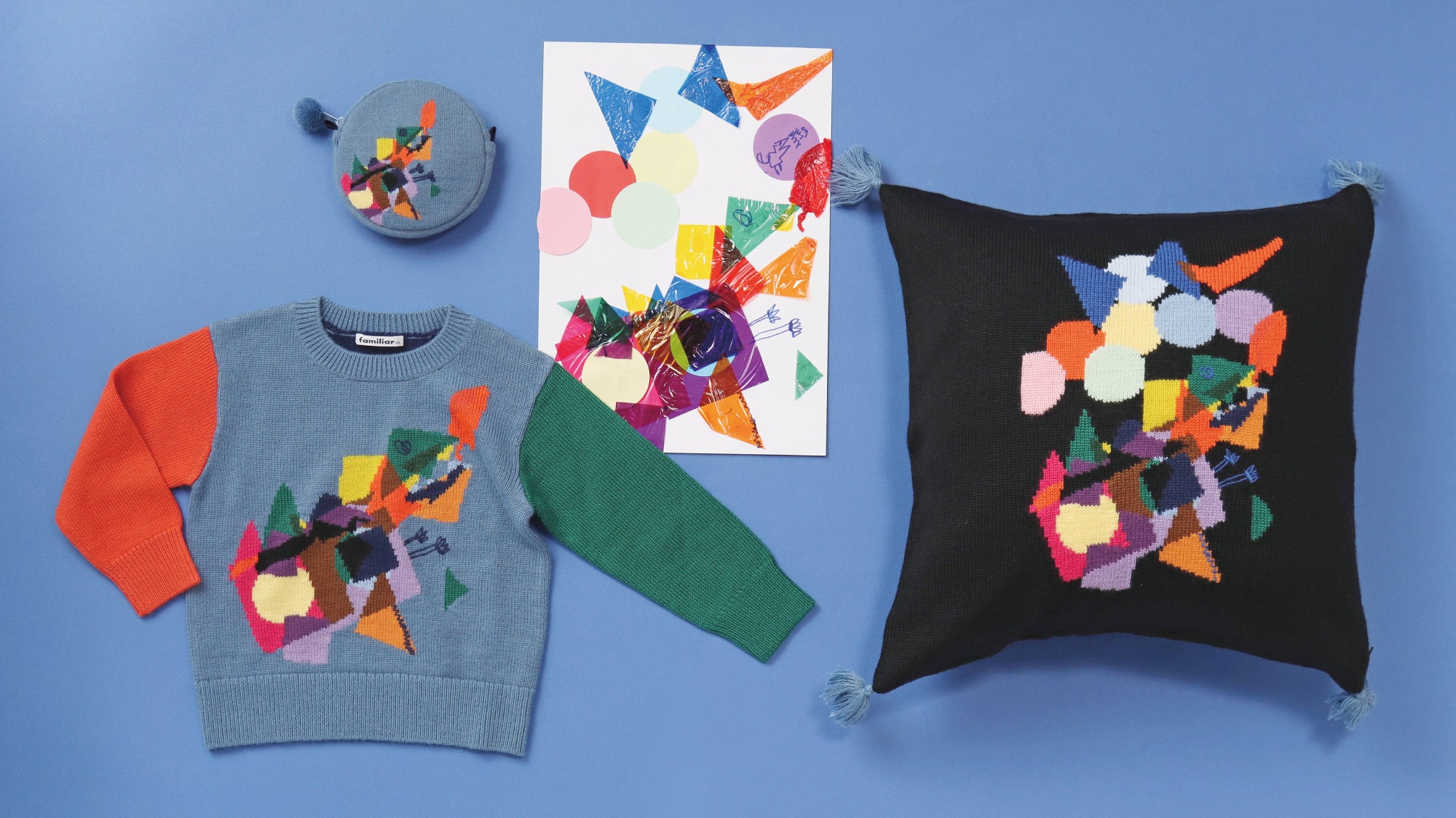 他にも、○△□のカタチをした京菓子司末富とのコラボレーションスイーツの販売や、○△□の様々なパーツでファッションデザインを楽しむ無料のワークショップ、さらには、その作品をもとにファミリアのデザイナーと1対1で相談しながら、世界でひとつのニットアイテムを受注できる予約制のワークショップを実施いたします。この機会にぜひ、子どもたちの可能性をクリエイトする新たなポップアップイベントをお楽しみください。