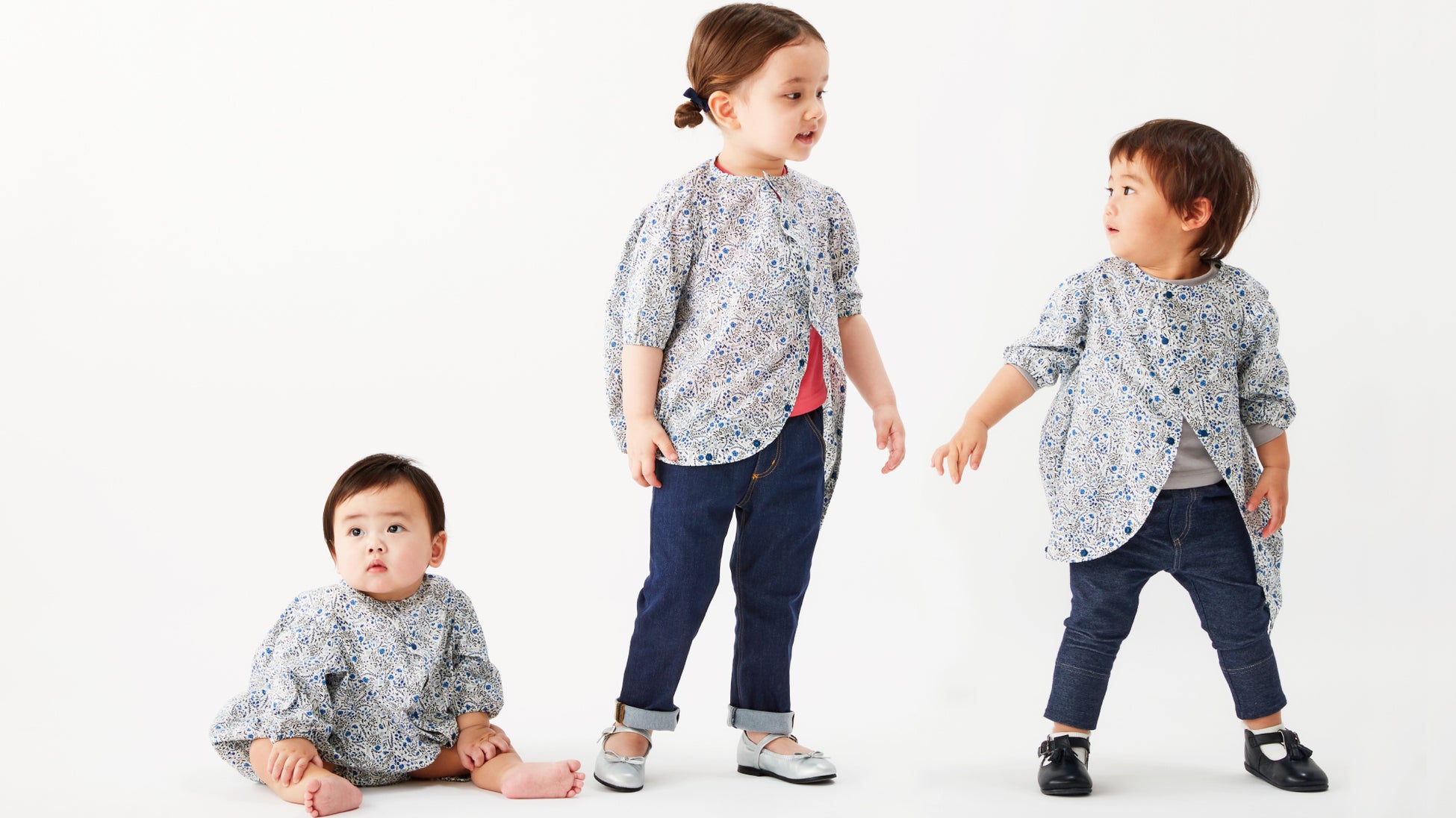 ANREALAGE 定番のボールシャツが、ベビー・ 子ども服として登場。生まれたときから3歳ま で、ワンサイズで長く着用できるボール型の新しいカタチの子ども服。新生児期はベビー服として、大きくなったらワンピースやシャツとして、 成長に合わせて異なるスタイリングをお楽しみいただけます。ファミリアオリジナルのテキスタイルやカラフルなリバティ柄など、計10種類のカラーが登場します。職人が1点ずつ丁寧に縫い上げたMADE IN JAPANの逸品です。