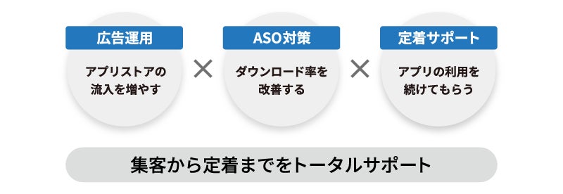 「インストール最大化サービス」は、ユーザー獲得の最大化を目指し、広告運用に加えてASO(アプリストア最適化)対策も提供するソリューションです。広告運用の状況に応じて適切なキーワード対策を行い検索流入の増加を促進。豊富な実績とノウハウを持つReproが、ユーザー獲得から定着率の向上までを一貫して支援します。