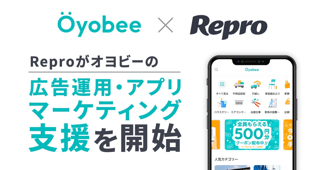 このたび当社は、オヨビーが抱える課題を解決しさらなる成長を実現するため、広告運用支援に加え、アプリマーケティングツール「Repro App」の提供およびアプリマーケティング実行支援を行ってまいります。