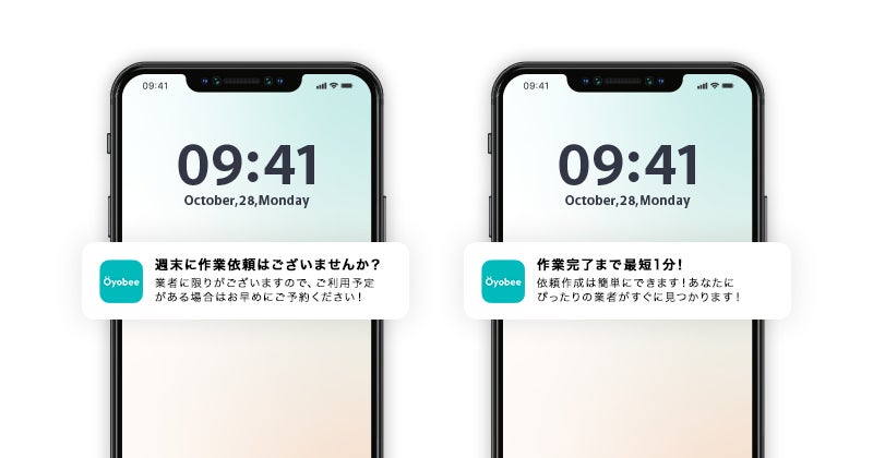 「オヨビー」は不用品の処分や水のトラブル、パソコンやスマートフォンの修理など、あらゆる生活のトラブルやお悩みが生じたタイミングですぐに業者やワーカーを呼び出せる「業者呼び出しアプリ」です。ユーザーは、業者探しや電話やメールでのやり取り、日程調整や予約の手続き、現地での見積もりなど、従来の駆けつけサービスで発生していた手間や時間を省くことができます。また、AIシミュレーターにより、サービスに応じた相場が自動で算出されるため、ユーザーは相場を元に納得のいく金額を自身で決めることが可能です。