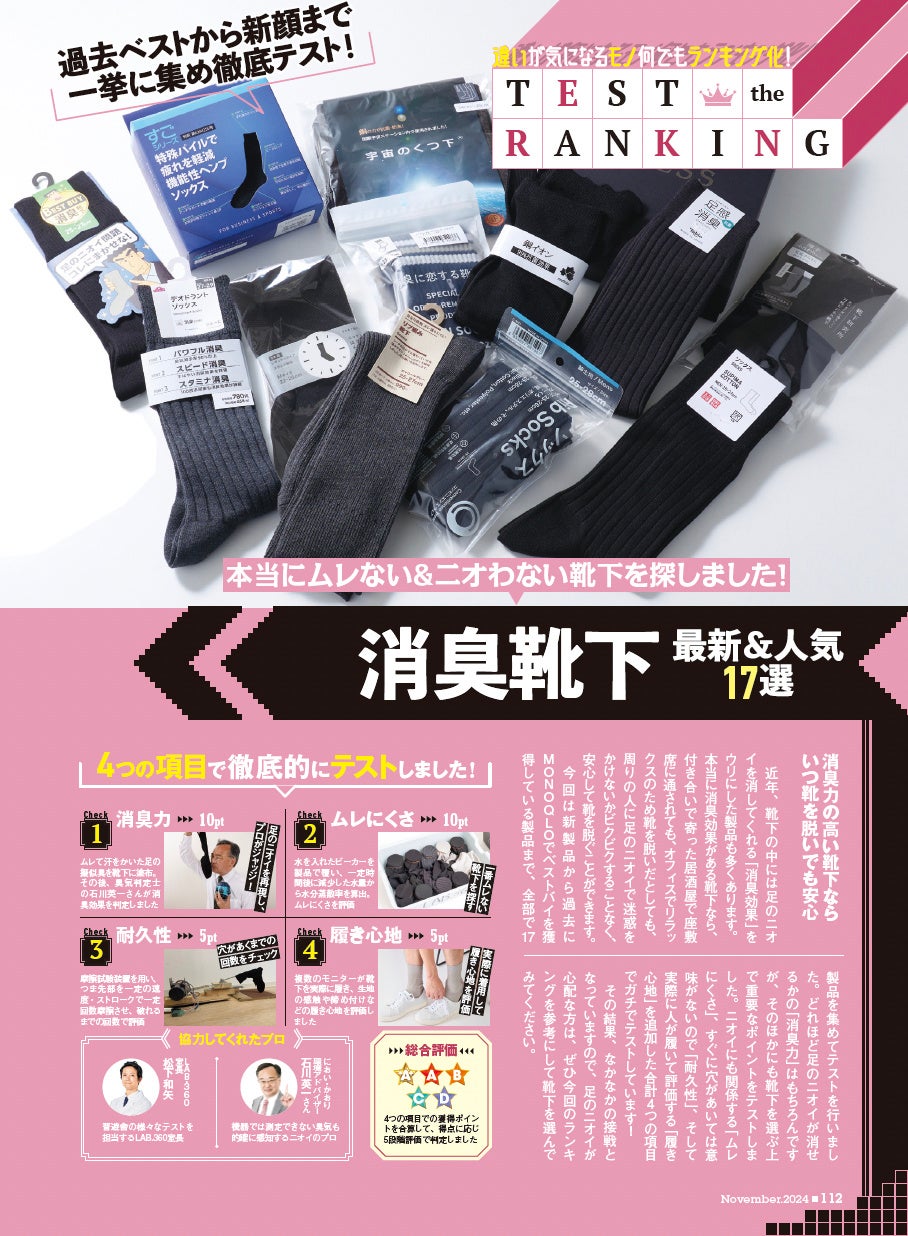惜しくもTOP10入りしなかった「消臭靴下」の結果は発売中の『MONOQLO』2024年11⽉号をチェック! 今後も『MONOQLO』最新号で掲載したランキングをいち早く発信していきます。お楽しみに!