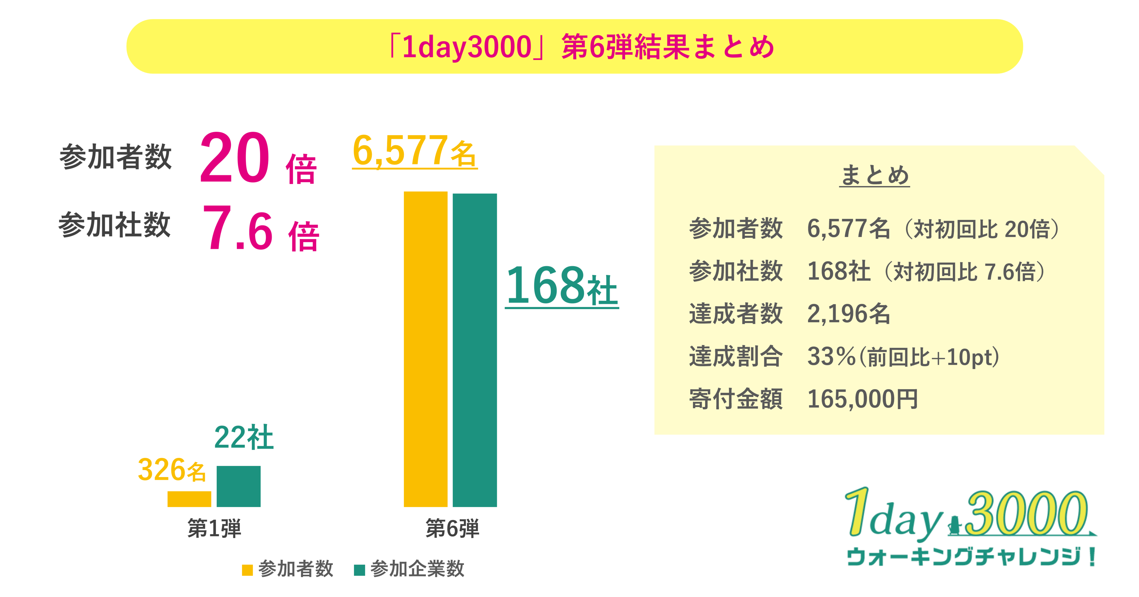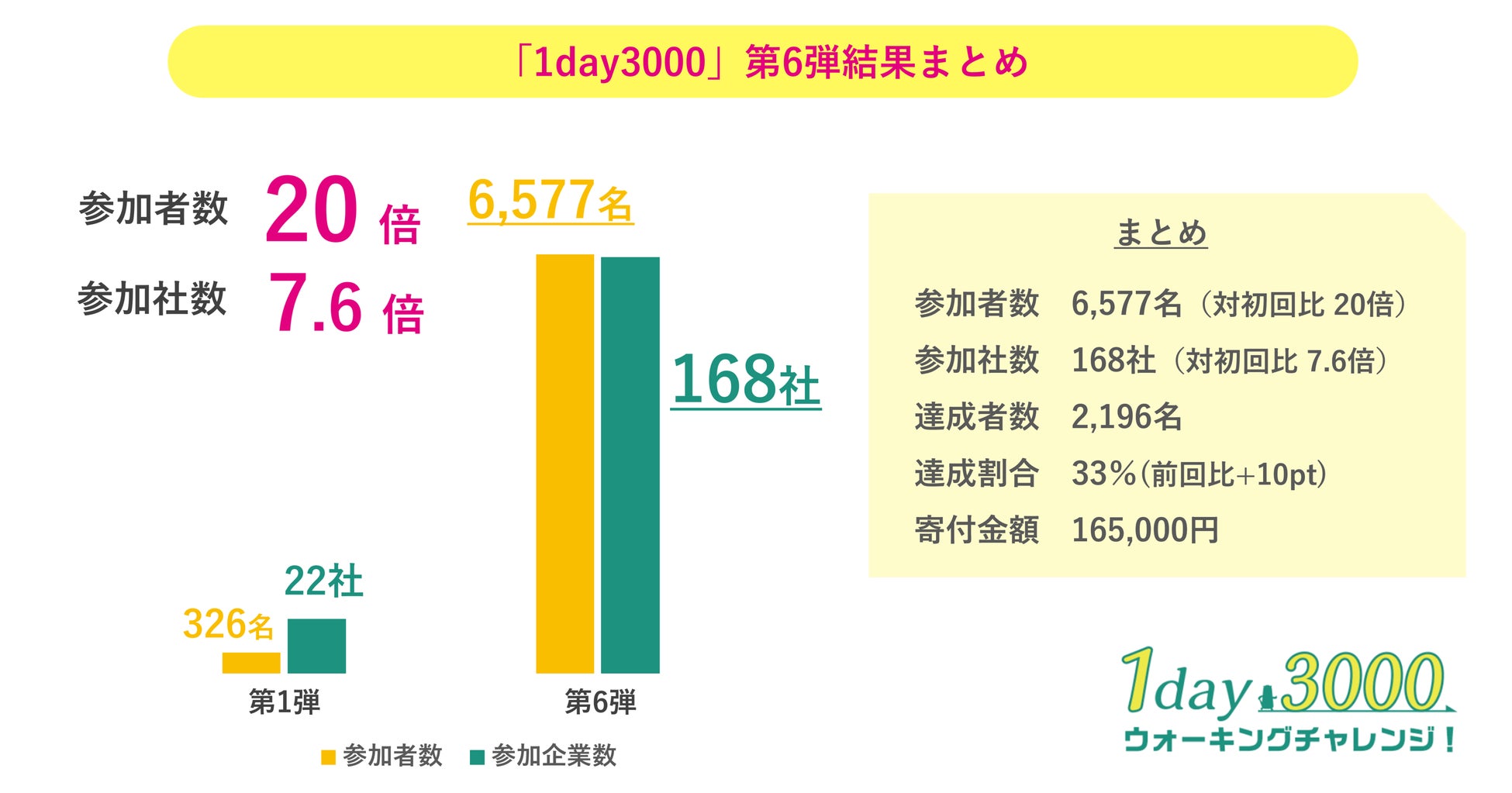 第6弾となった今回、史上最多168社6,557名が参加しました。第1弾と比較すると、参加者数は20倍、参加社数は7.6倍になりました。