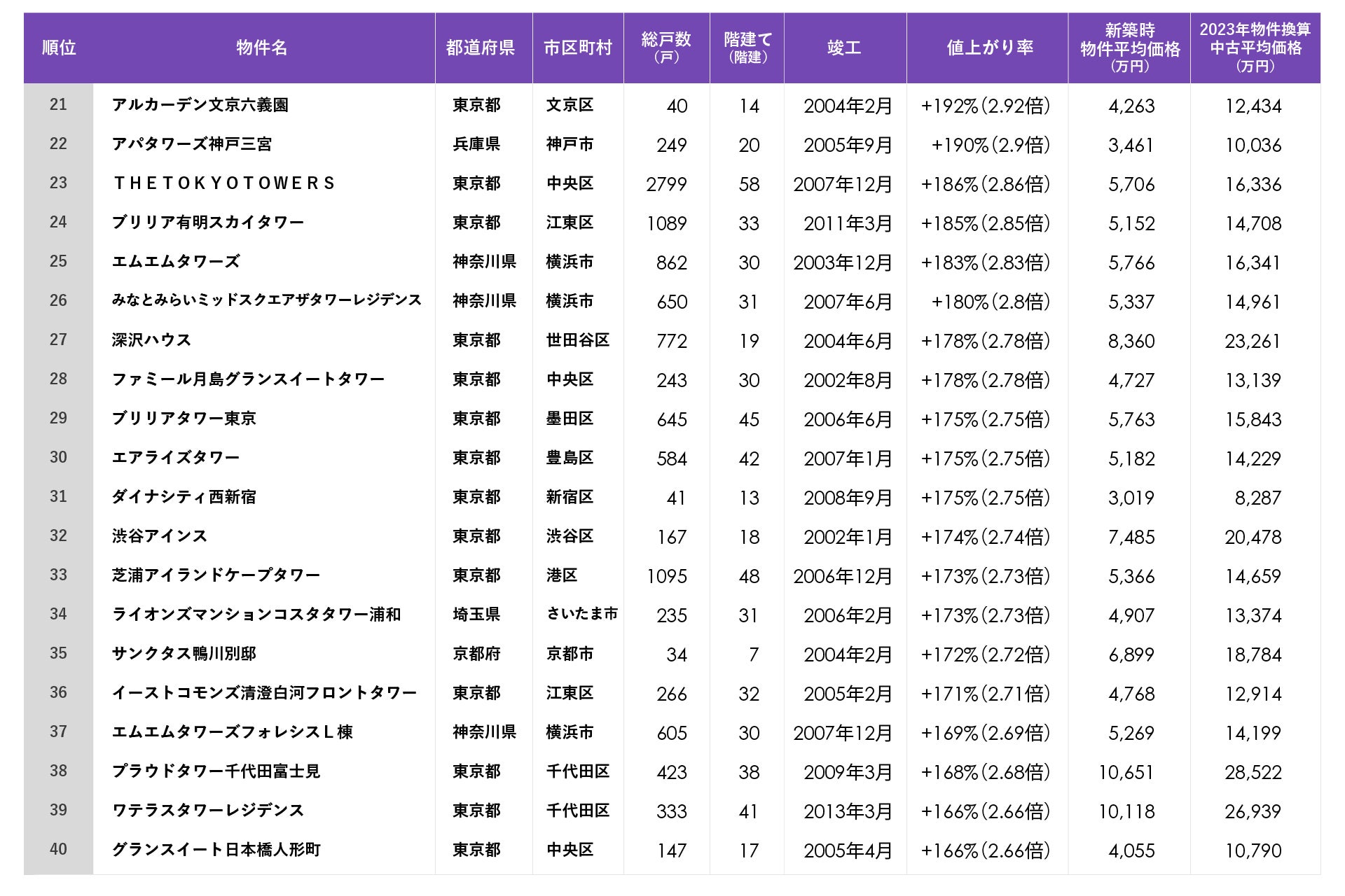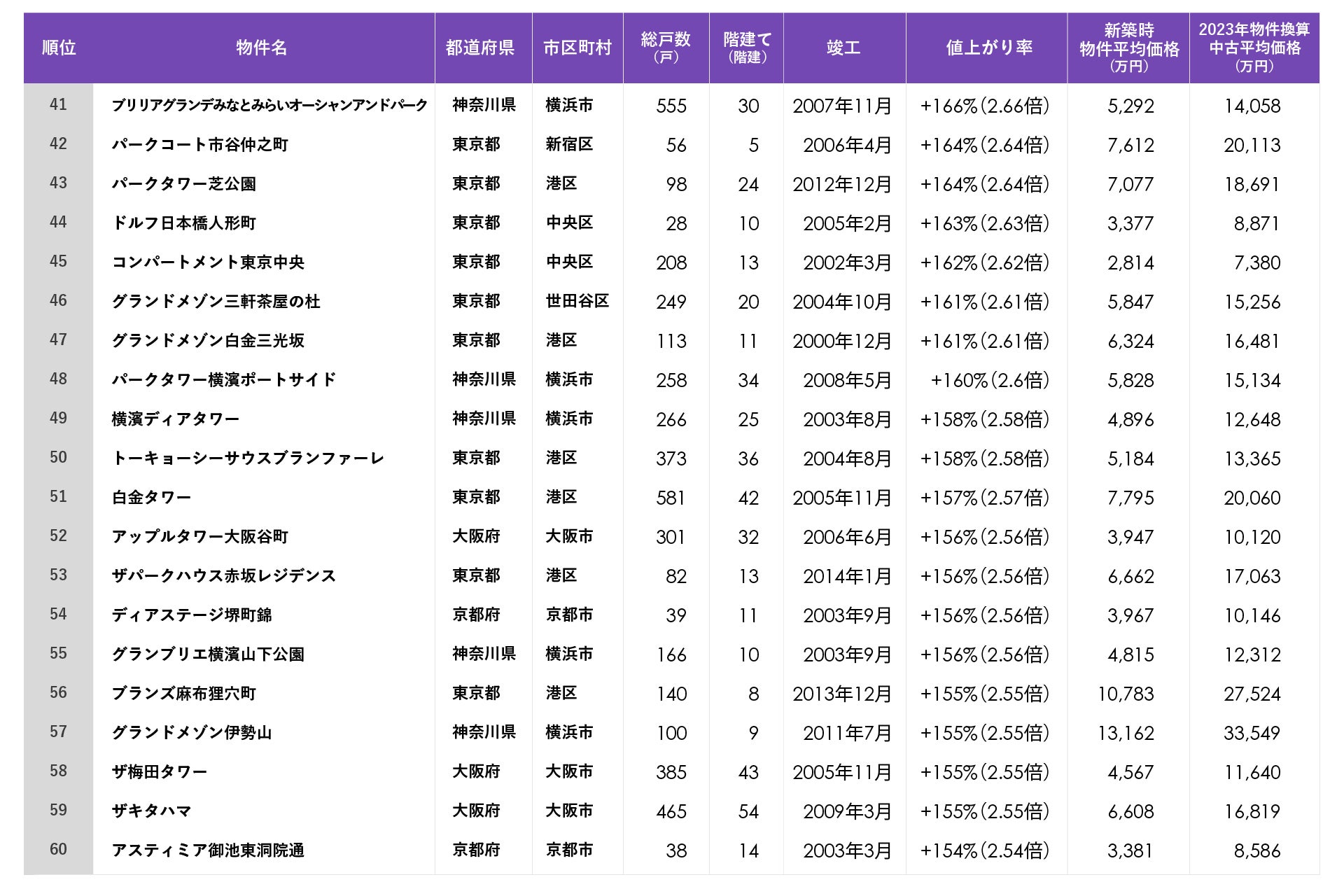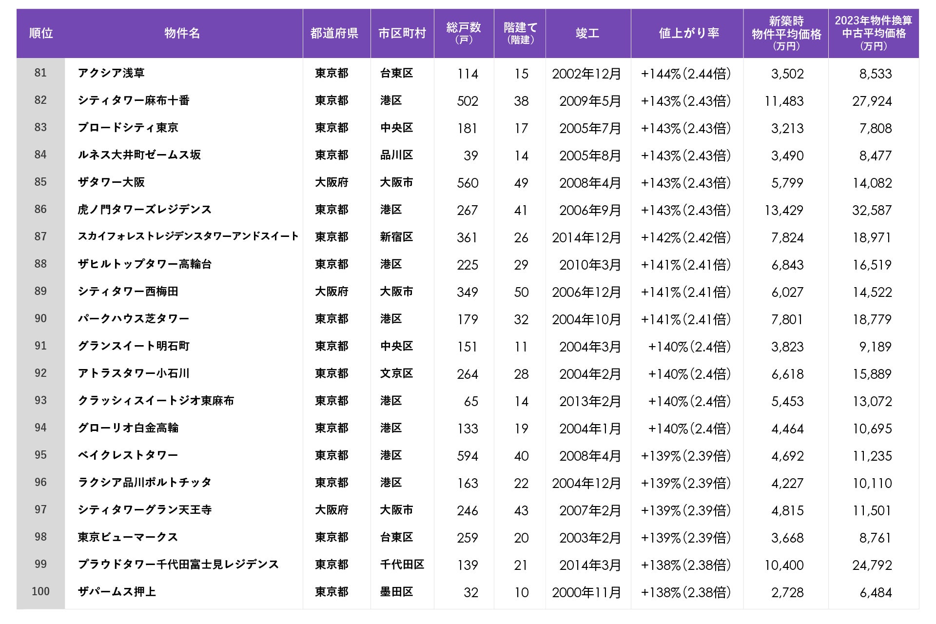 トップは新築時価格の5倍!2023年に最も値上がりした中古マンションは?中古マンション騰落率BEST100