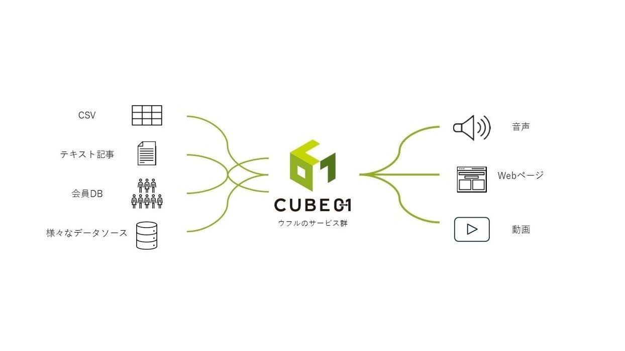 本サービスは現在開発中であり、ウフルが提供するデータ・サービス連携基盤「CUCON(キューコン)」を活用し、実装を継続しております。散在する情報の収集、AIによる解析と再編集、複数形式でのコンテンツ出力、定期的な自動配信までの一連のプロセスを、一元的に構築・運用できるシステムの実現を目指しています。