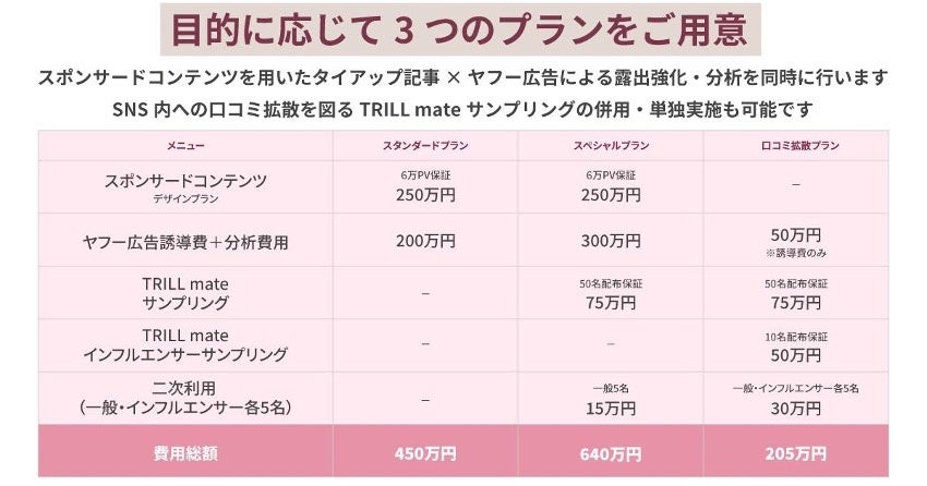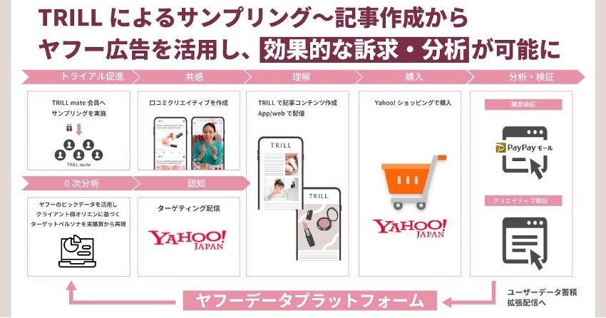 ヤフーの広告配信・分析に加え、TRILL配信記事と「TRILLmate」所属インフルエンサーの口コミ拡散で商品ページやクライアントサイトへの流入を強化