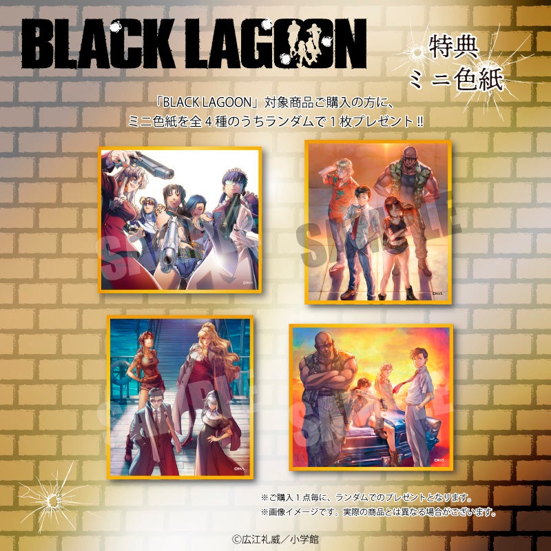 さらに期間中に『BLACK LAGOON』対象商品をご購入1点毎に、特典ミニ色紙(全4種)をランダムで1枚プレゼントいたします。