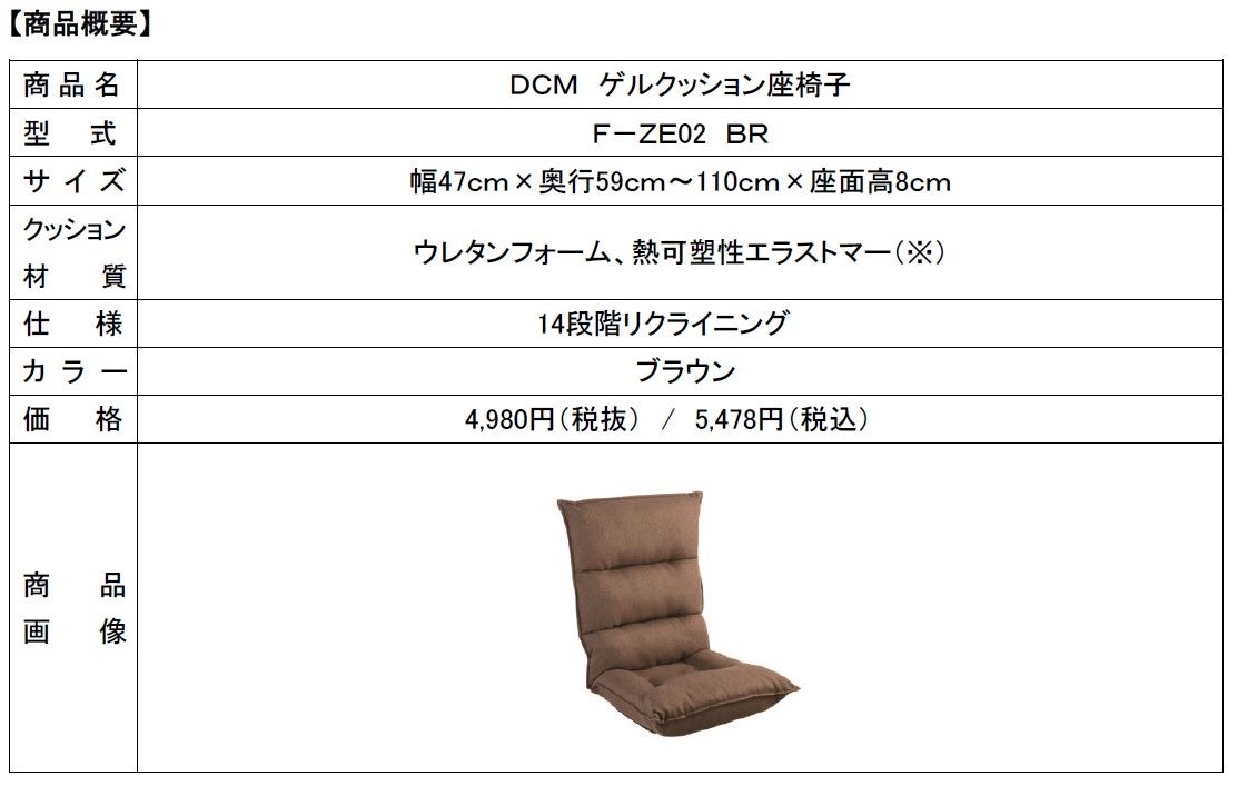 長時間座っても疲れにくい「DCM ゲルクッション座椅子 」新発売