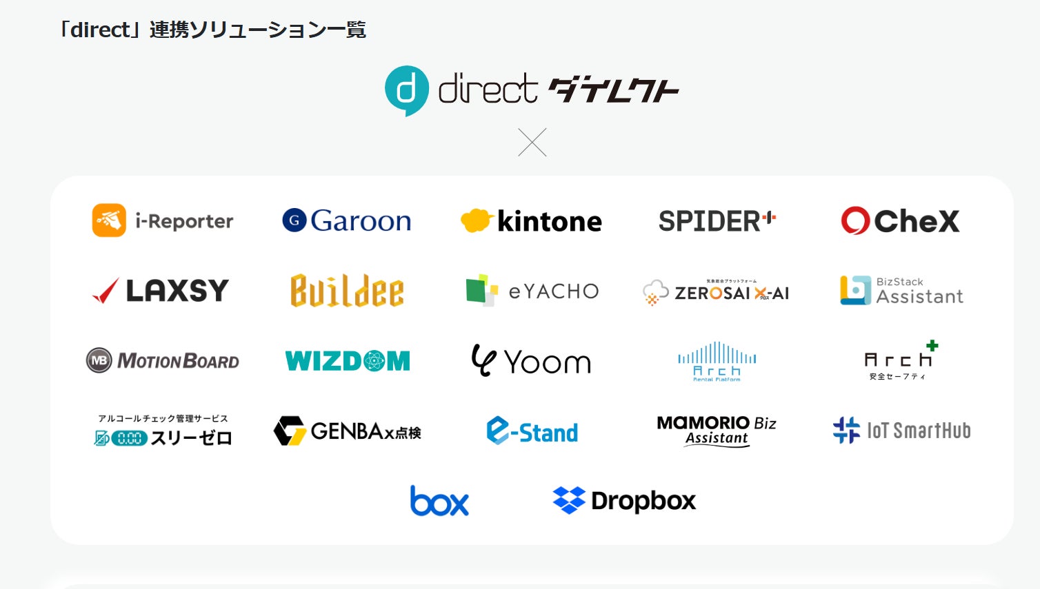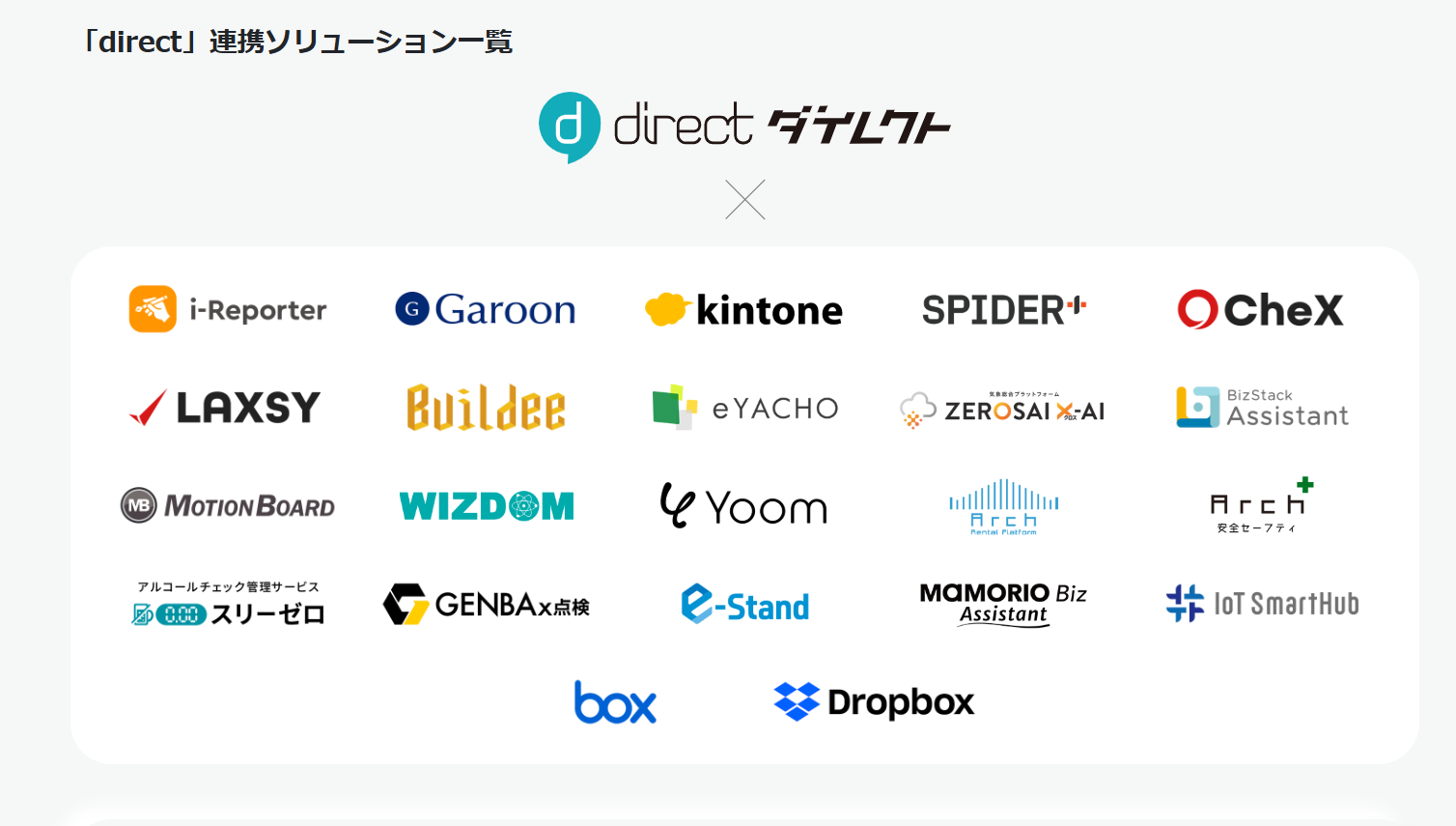 さらに「direct」は、点検・報告、図面管理、クラウドストレージなどの外部ソリューションと連携することで、現場の情報を一つにつなぐ“ハブ”として機能します。これにより、情報の分断を解消し、業務効率化と迅速な意思決定を支援しています。