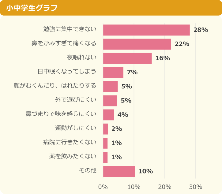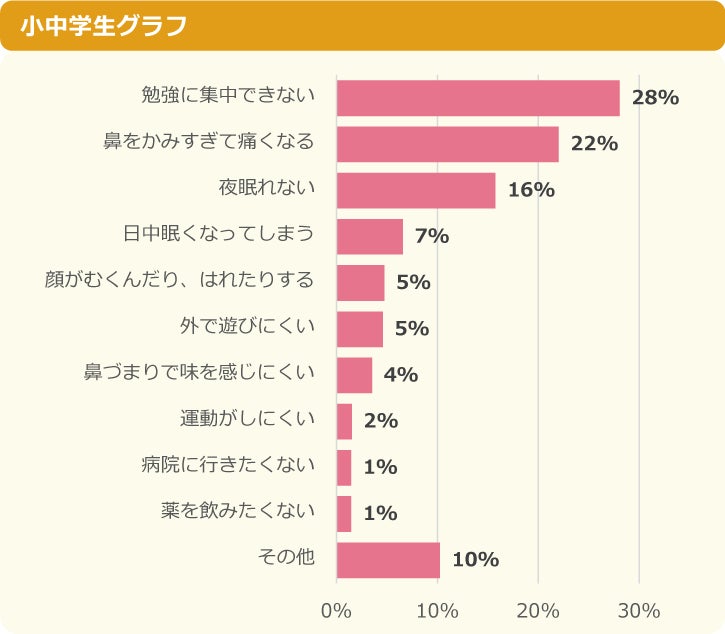 【調査結果】花粉症の小中学生が一番苦しんでいること1位は「勉強に集中できない」~「ニフティキッズ」にて「花粉症」についての調査を実施~