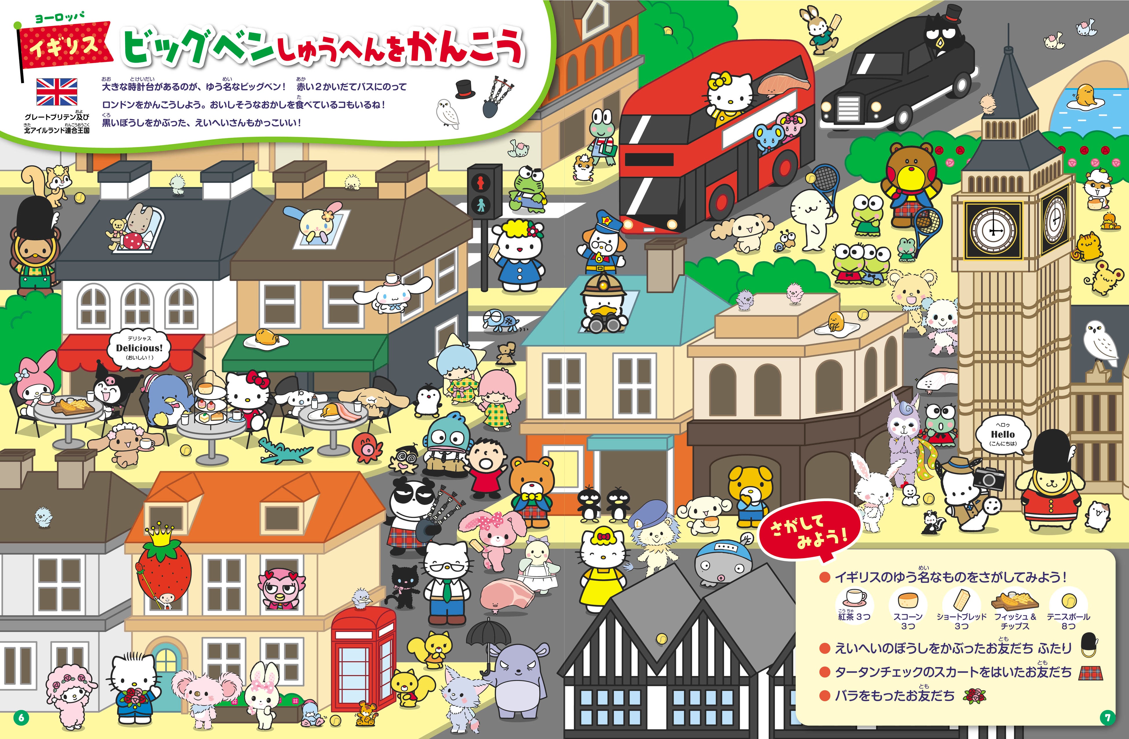 「るるぶ」と「サンリオキャラクターズ」がコラボした「さがし絵えほん」の第2弾!『るるぶ 学べるさがし絵えほん サンリオキャラクターズ 世界一周旅行』2022年6月16日(木)発売