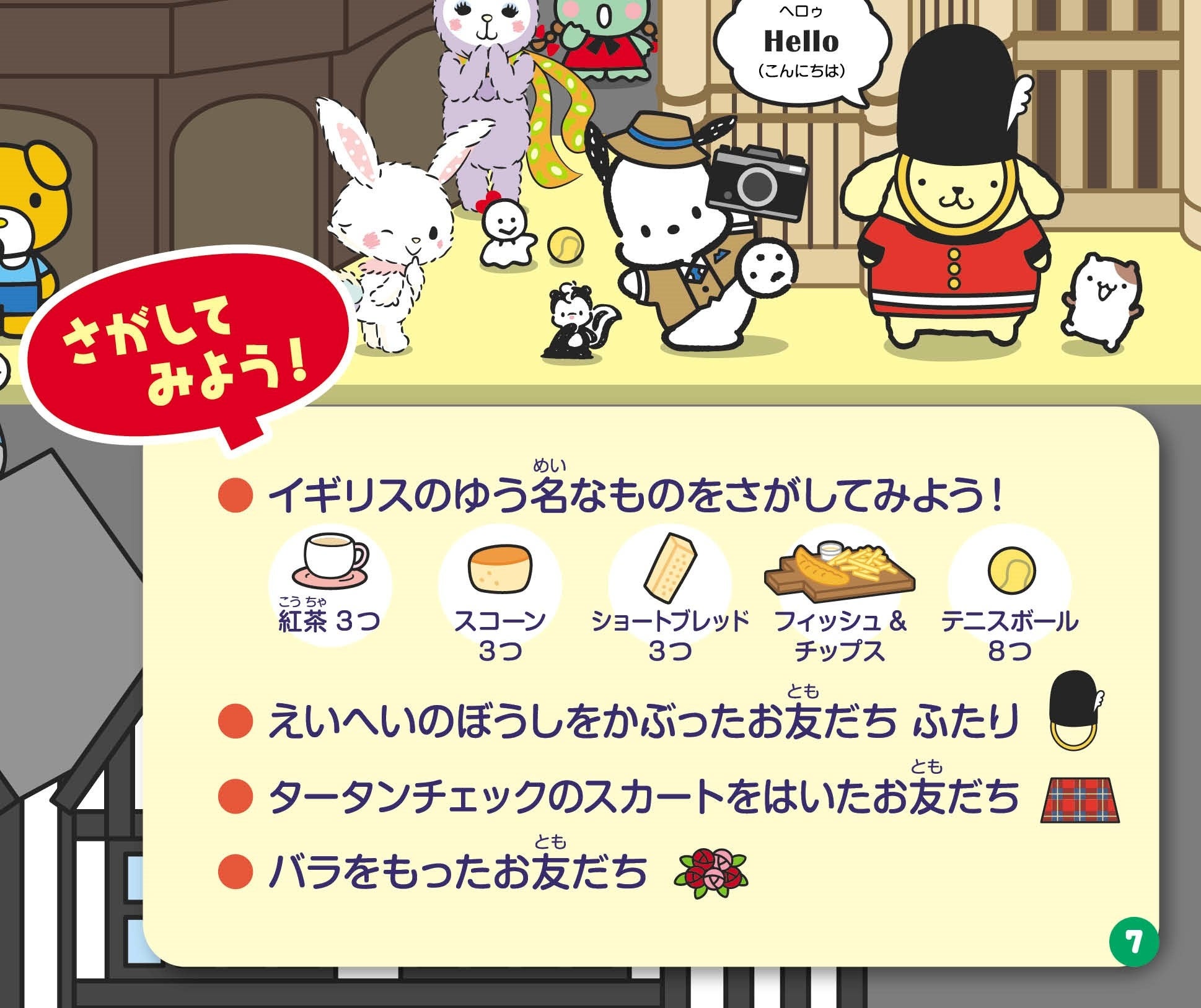 さがし絵の中にはキャラクターたちだけでなく、各国の名物も隠れています。各ページに設けられた「さがしてみよう!」を見つけることで、楽しみながら各国の特色を知ることができます。
