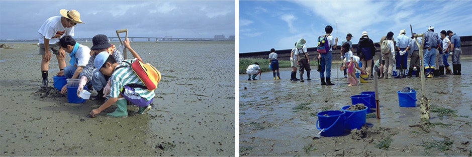 当日は汐川干潟に詳しい講師が、干潟の生き物や野鳥について教えてくれるので、干潟の豊かな自然を楽しみながら学ぶことができ、野鳥やカニ、貝などいろいろな生き物に出会えます!