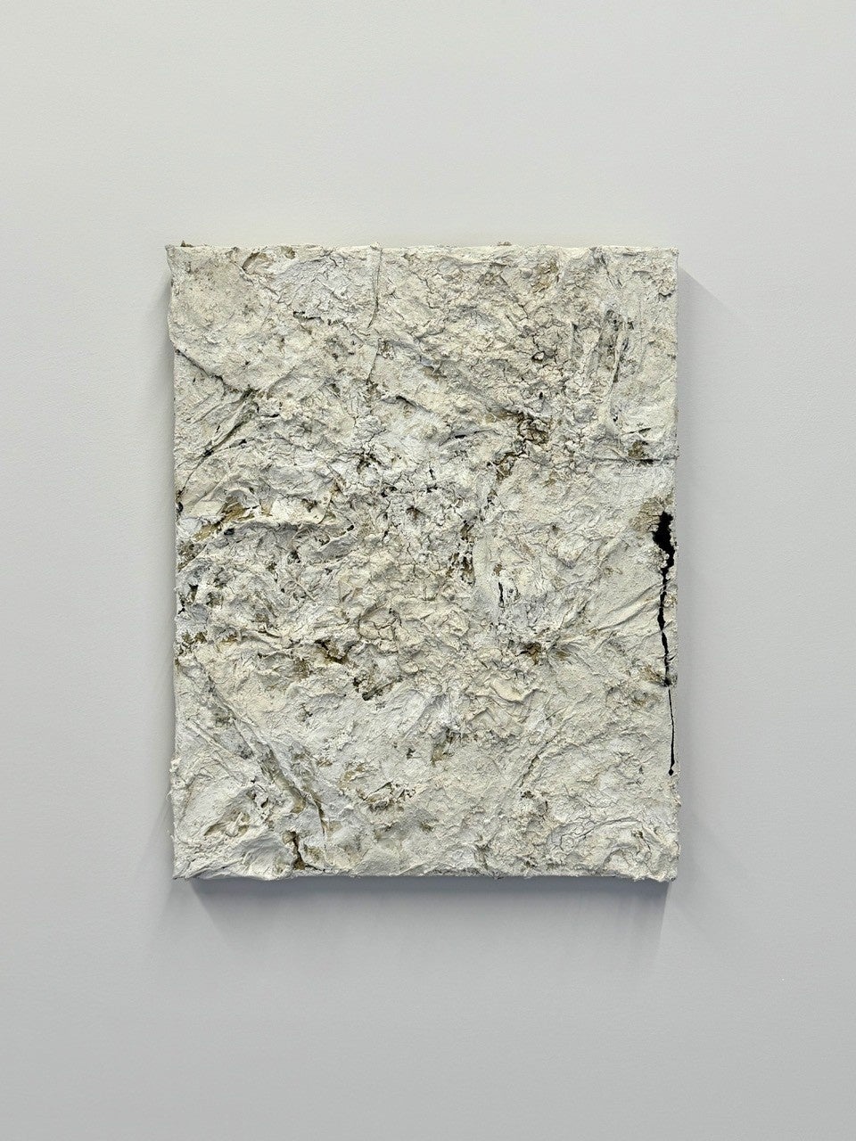 今回共同で展示するのは、現代アートや美しい手仕事を紹介するギャラリーオンザヒル(gallery ON THE HILL)のセレクションによる作品「ON THE HILL selection」です。黒谷和紙作家・ハタノワタル氏の代表作「積み重なったもの」のシリーズは、和紙、土、顔料などが幾層にも重ねられ、長い年月をかけて積み重なってきたものの美しさを表現。黒谷和紙は昔ながらの素朴な風合いで、丈夫で長持ちするのが特徴で、アーツアンドカルチャーの壁紙としても使用されています。