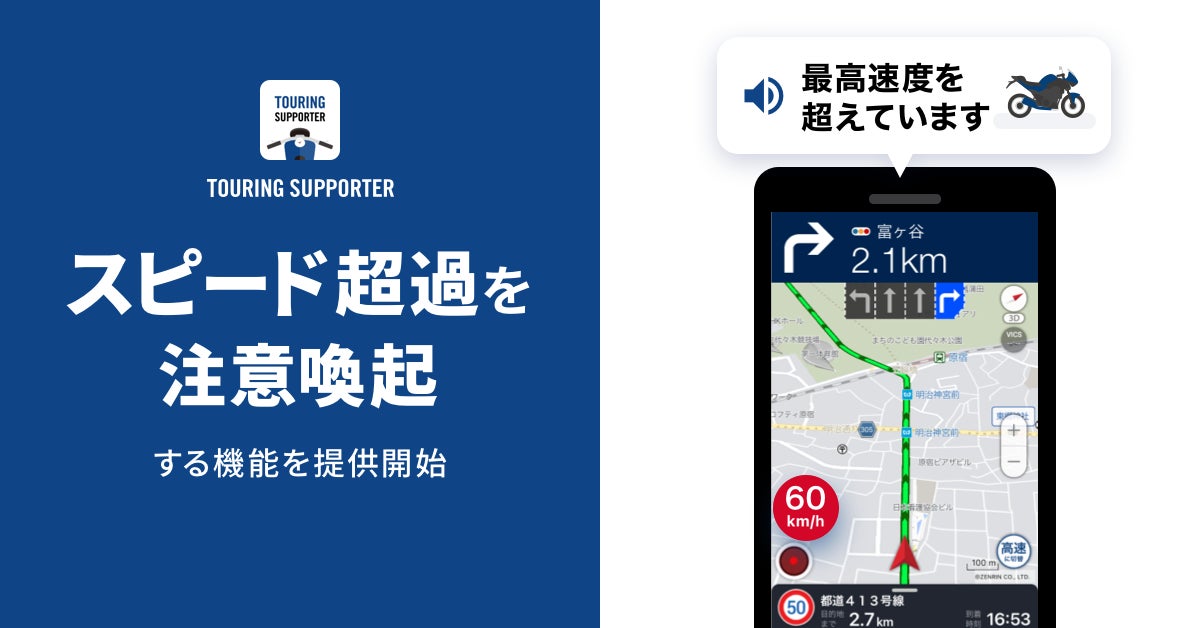 『ツーリングサポーター by NAVITIME』、「最高速度を超えています」と発話する「スピード超過案内」機能を提供開始