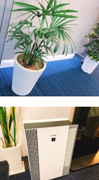 職場環境改善のために、最新の空気清浄機を導入しました。「良い空気の中で仕事がしたい」という声から、設置しています。冬の時期は室内の乾燥対策、春には花粉対策等に役立っております。多くの時間を過ごす職場の改善に日々取り組み、快適なスペースで働くことで、更に効率性を高めます。