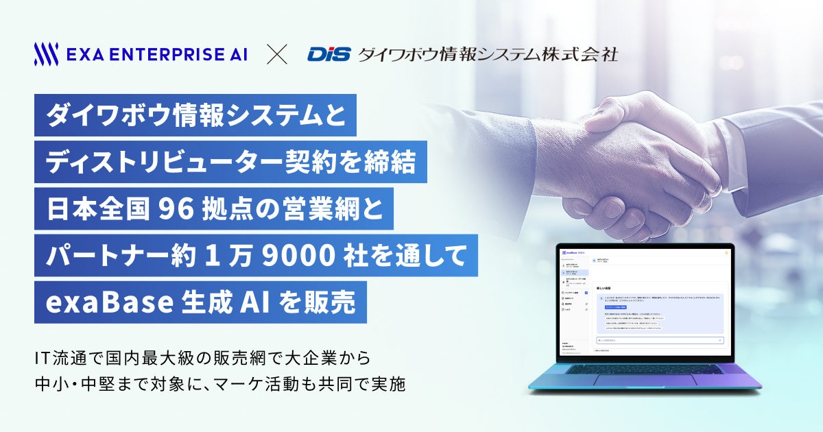 ダイワボウ情報システムとディストリビューター契約を締結 日本全国96拠点の営業網とパートナー約1万9000社を通して、exaBase 生成AIを販売
