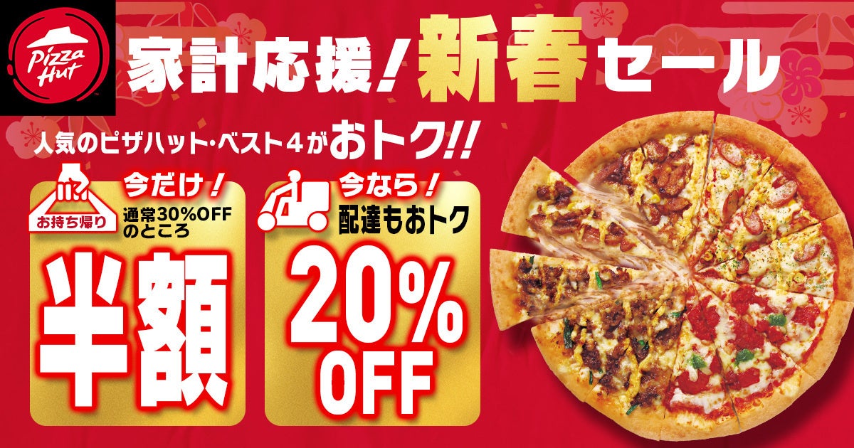 日本ピザハット株式会社(代表取締役社長:篠崎 幸男、本社:神奈川県横浜市、以下:ピザハット)が展開する世界最大級のピザチェーン「ピザハット」は、2025年1月11日(土)〜1月19日(日)までの9日間限定で「家計応援!新春半額セール」を開催いたします!