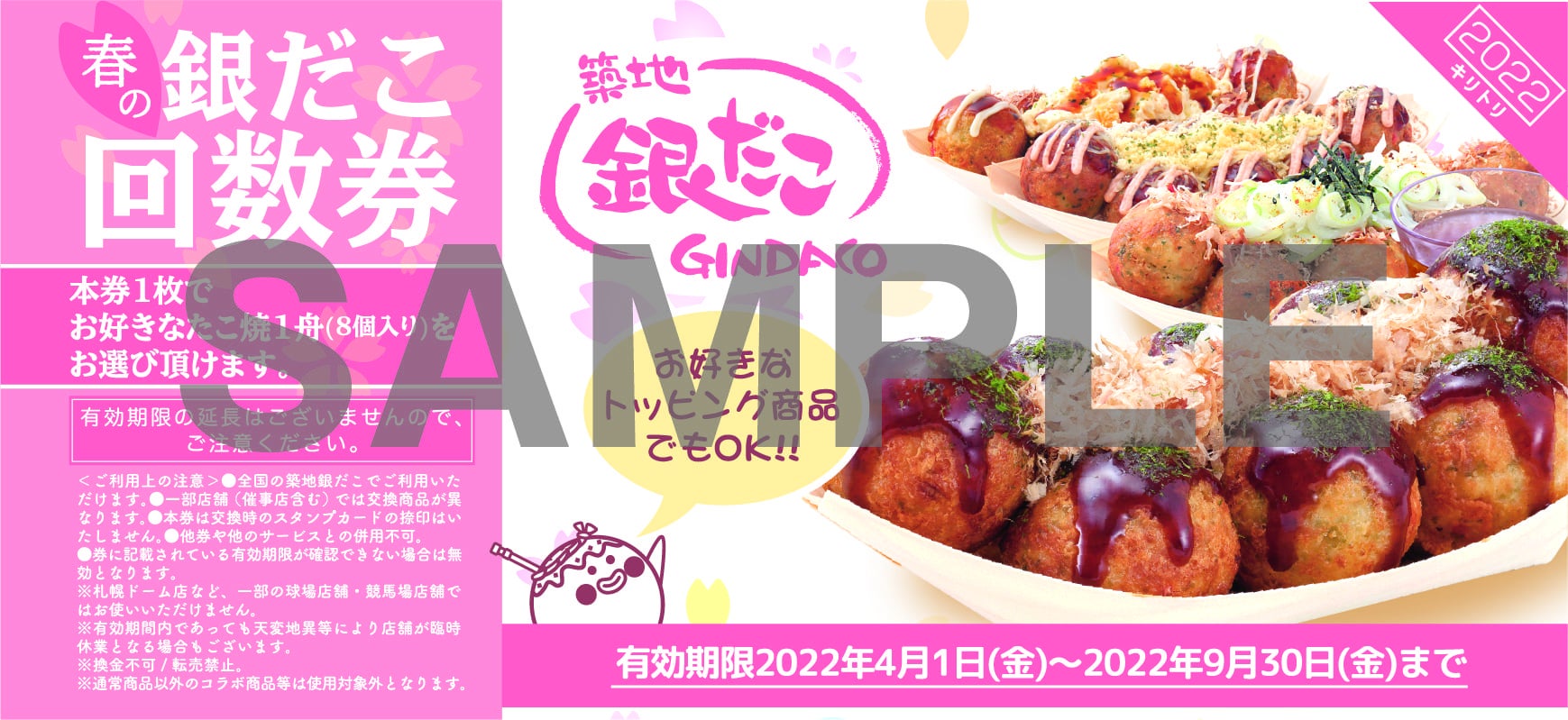 また、3月8日(火)より、全国の築地銀だこ店舗(一部店舗を除く)にて、“ぜったいお得な” 『春の回数券』 を数量限定で発売いたします。