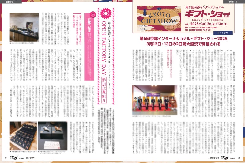 3月12日(水)〜13日(木)に開催された伝統とモダンと革新の商品見本市「第6回京都インターナショナル・ギフト・ショー2025」のレポートを掲載。コンテスト結果や注目フェア紹介に加え、会期終了翌日に実施した「オープンファクトリーデイ」の参加企業も取材しました。