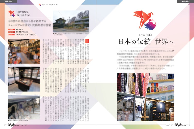 当号では巻頭特集として「日本の伝統 世界へ」を展開。海外からも高く評価される播州織や西陣織、瀬戸焼といった伝統産業の継承と革新の取り組みを取材し、その可能性を追求します。