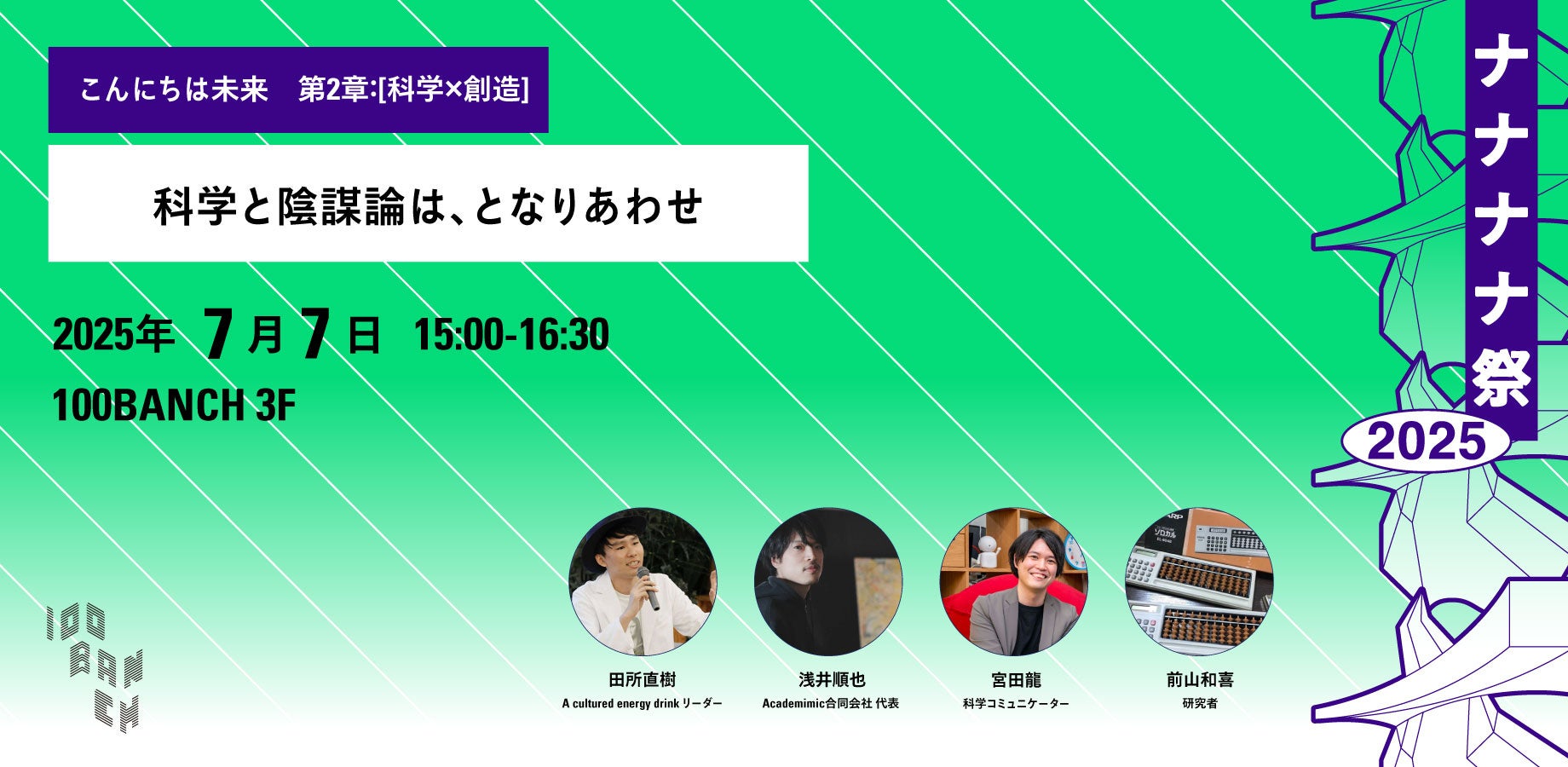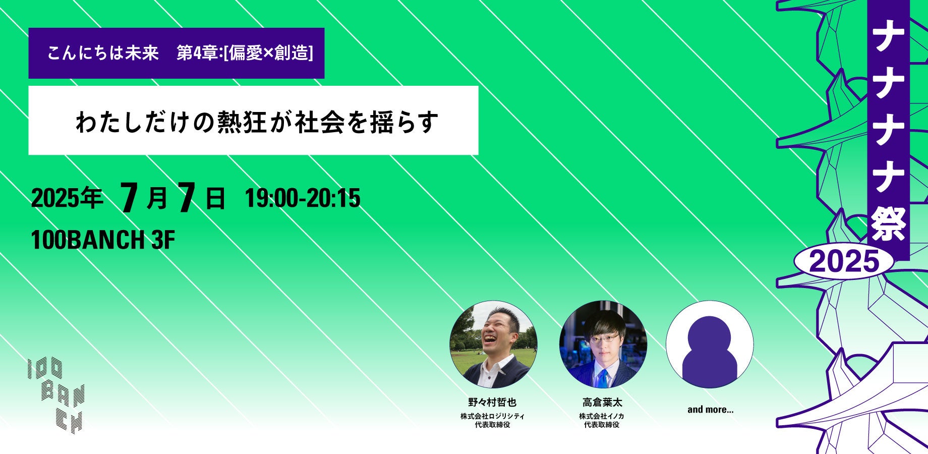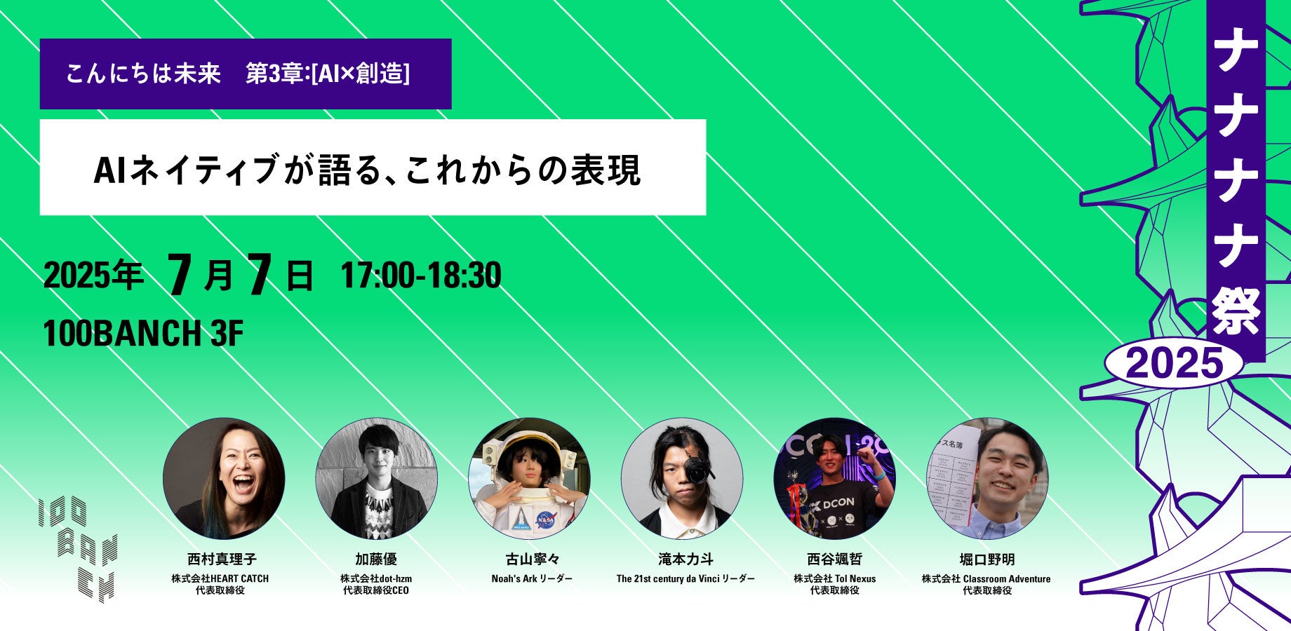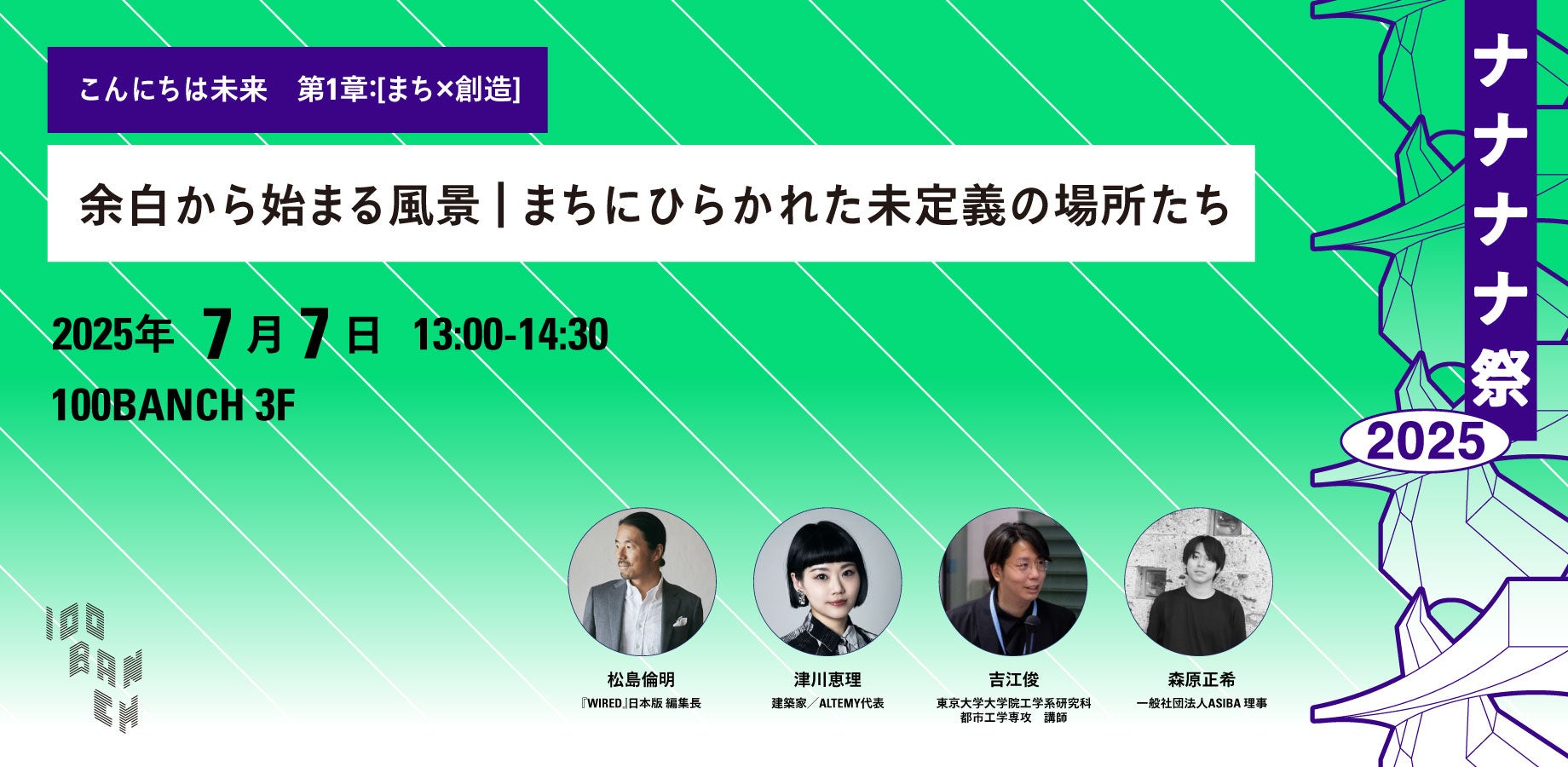 100BANCHが7月7日(月)にカンファレンスデー「こんにちは未来ー創造性が炸裂するー」を開催 | まち・科学・AI・偏愛をめぐり、有識者やスタートアップ、クリエイターらが創造の最前線を語る