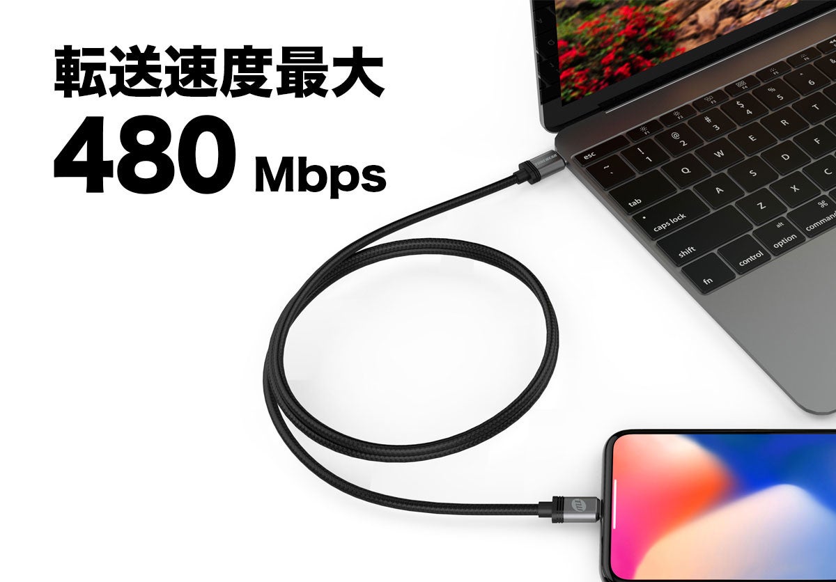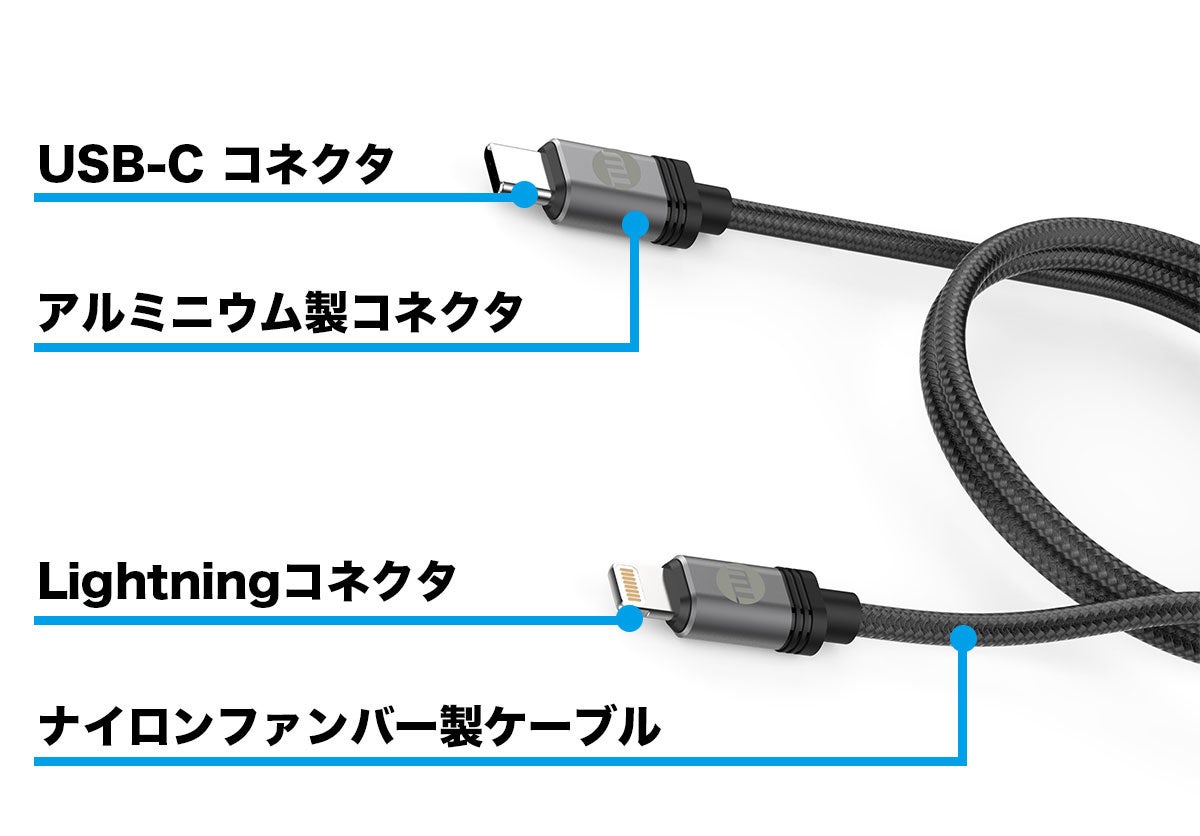 - アルミニウム製コネクタとナイロンファイバーの高耐久性Lightningケーブル