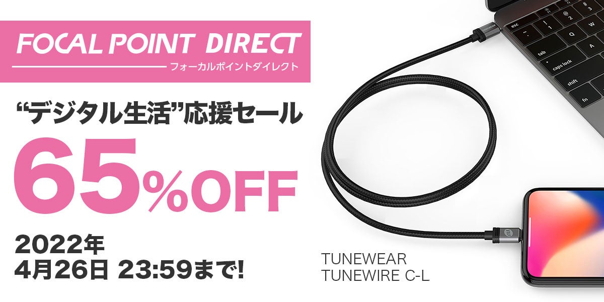 フォーカルポイント株式会社(本社:神奈川県横浜市、代表取締役 恩田英樹 以下フォーカルポイント)は、直営各オンラインショップにて、“デジタル生活”応援セールを開催いたします。充電、データ転送など様々なデジタル生活で活用シーンの多いUSB-C-Lightningケーブルですが、2本目が欲しくても少し高価でお求めづらい商品です。そこで新しい環境でのデジタル生活を応援するため、65%OFFの期間限定セールを行います。新生活で充電する場所が増えた方にも是非ご検討いただきたいです。